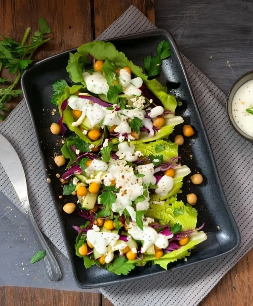 Knusprige Salatschiffchen mit Kichererbsen und Zaziki – Leichtes Fingerfood mit Suchtfaktor