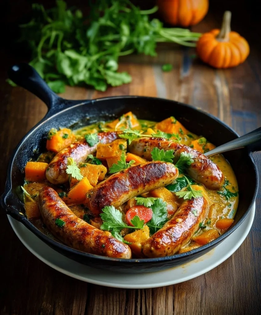 Kürbis ist reich an Beta-Carotin und Ballaststoffen, während Kokosmilch gesunde Fette liefert. Die Würstchen sorgen für Eiweiß, und insgesamt entsteht ein ausgewogenes, nahrhaftes Gericht, das dich sättigt, ohne zu beschweren. Ich liebe es, dass man sich danach rundum wohlfühlt.