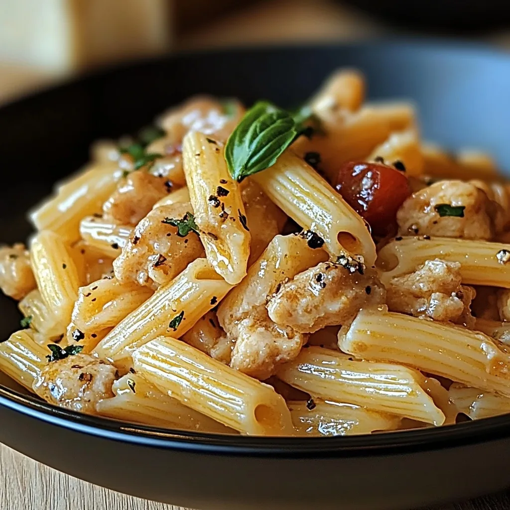 Du kannst die Penne durch Tagliatelle oder Fusilli ersetzen. Wenn du es etwas gesünder magst, probiere Vollkornpasta oder Zucchininudeln. Auch ein paar Brokkoliröschen oder Spinatblätter in der Sauce bringen Farbe und Frische hinein.