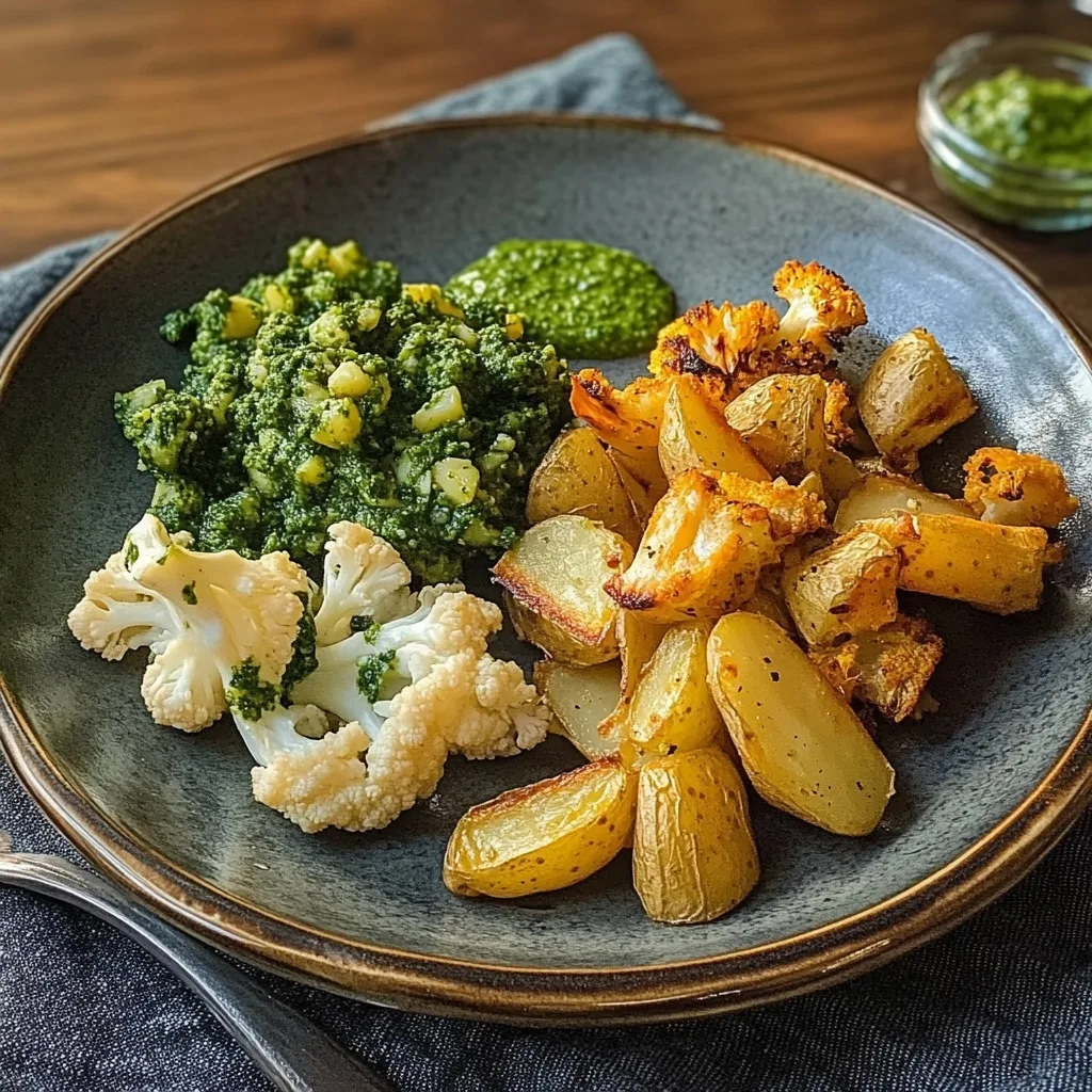 Wenn der Frühling endlich da ist, freue ich mich jedes Jahr besonders auf frischen Bärlauch. Dieses Gericht vereint alles, was ich an dieser Jahreszeit liebe: zarte Kartoffeln, leicht nussigen Blumenkohl und das intensive, grüne Aroma von Bärlauch. Im Ofen entwickelt das Gemüse eine herrliche Röstaroma, außen knusprig, innen weich – und das Pesto bringt eine frische, würzige Note dazu.
