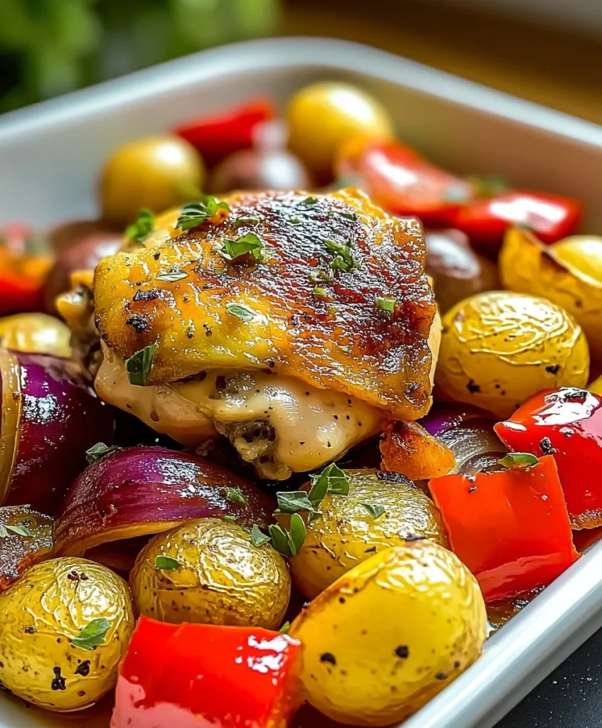 Kartoffeln, Hähnchen und Paprika – eine einfache, aber unschlagbare Kombination. In Griechenland ist das Zusammenspiel von Zitronensäure, frischen Kräutern und Olivenöl typisch für viele Gerichte. Diese Aromen bringen Sonne auf den Teller, selbst an grauen Tagen. Außerdem ist dieses Gericht perfekt für Familien oder Gäste, weil alles gemeinsam im Ofen gart – kein Stress, kein ständiges Rühren, nur Vorfreude.