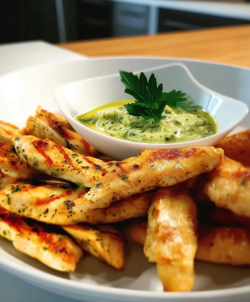 Zarte Hähnchenstreifen mit Basilikum-Dip – Ein Sommergericht voller Aroma und Frische