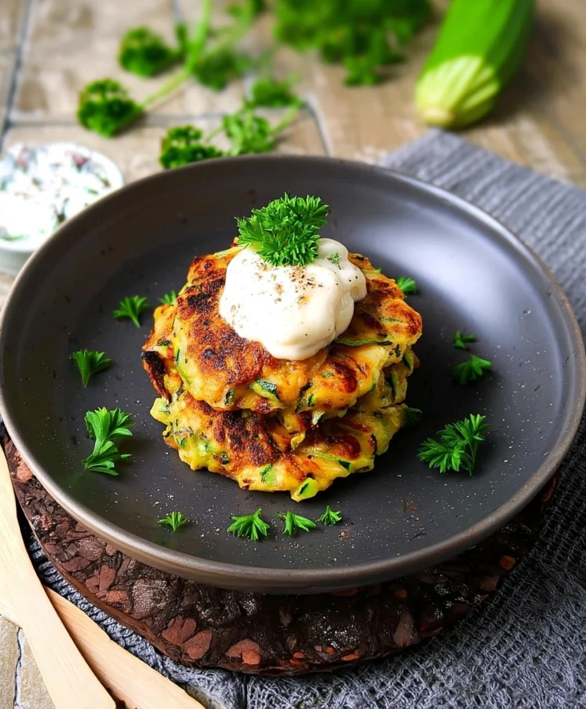 Ich esse Zucchinipuffer am liebsten mit einem Klecks Kräuterquark oder Joghurt-Dip. Wer es traditioneller mag, serviert Apfelmus dazu – eine ungewöhnliche Kombination, aber überraschend gut. Auch ein frischer Gurkensalat, Lachs oder einfach ein Spiegelei passen hervorragend. Für Kinder rolle ich sie manchmal wie kleine Wraps in Tortillas ein.