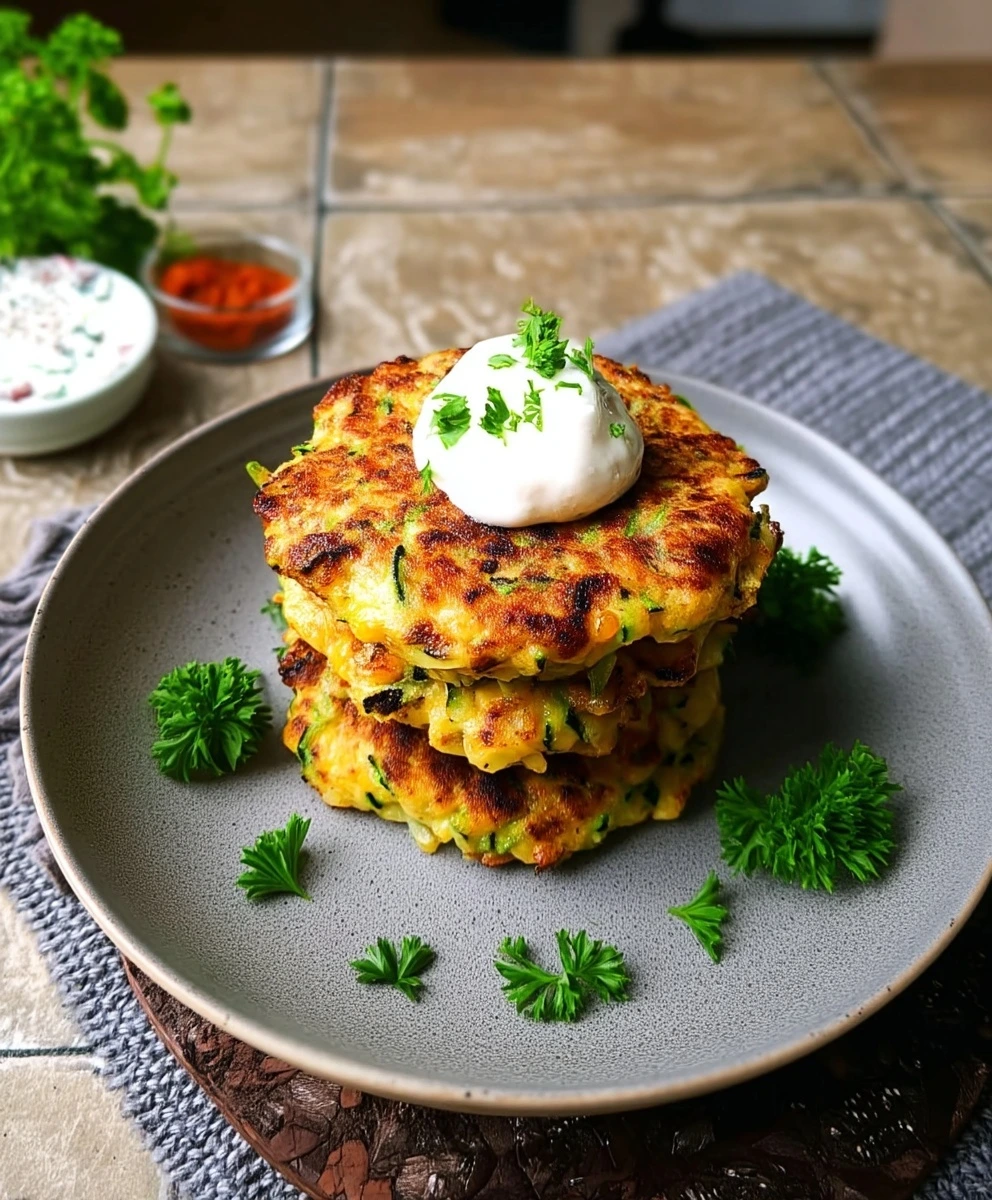 Ich esse Zucchinipuffer am liebsten mit einem Klecks Kräuterquark oder Joghurt-Dip. Wer es traditioneller mag, serviert Apfelmus dazu – eine ungewöhnliche Kombination, aber überraschend gut. Auch ein frischer Gurkensalat, Lachs oder einfach ein Spiegelei passen hervorragend. Für Kinder rolle ich sie manchmal wie kleine Wraps in Tortillas ein.